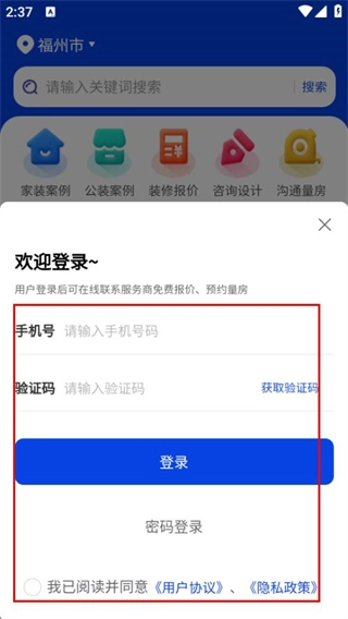 3、进入验证码登录页面后,依次输入相关信息、勾选同意协议,随后点击登录按钮,即可完成账号登录操作。
