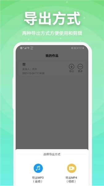 一键导出功能:音频可选择mp3或mp4格式导出,还能直接导出到手机,使用起来既便捷又实用。
