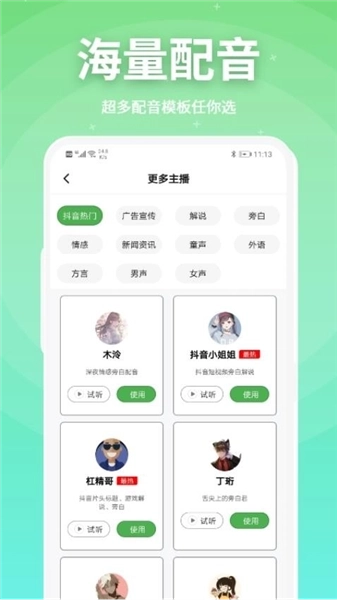 具有各种风格的主播声音,能够任意选择喜欢的主播