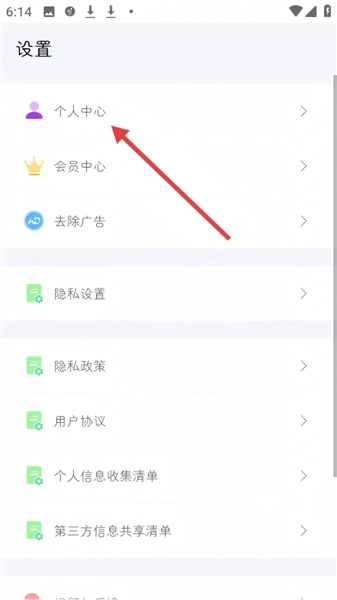 2、在【设置】页面,点击【个人中心】选项。