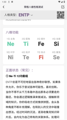 3、在软件的性格类型功能板块里,你能够查询到自身性格所具备的特征。