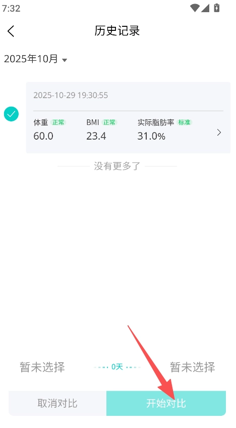 2、对比操作便捷易用,开始对比按钮设计醒目,数据对比结果展示直观清晰,用户能够轻松查看健康数据的变化情况,准确把握数据趋势。