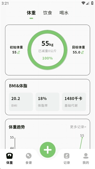 1、支持每日记录体重数据,系统会自动生成趋势曲线,让体重变化情况直观呈现,便于用户及时调整减脂计划。