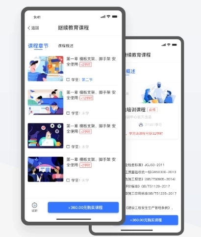 2.直播课程:面向建筑行业人员的岗前培训及继续教育直播课程,课程科目涵盖八大员、工人等不同类别的课程。