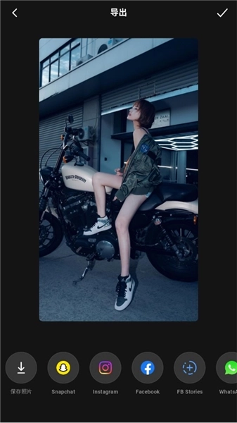 4、编辑操作完成后,点击页面右上角的“下一步”按钮,随后可选择保存照片至本地,或是将其分享到各类社交平台。