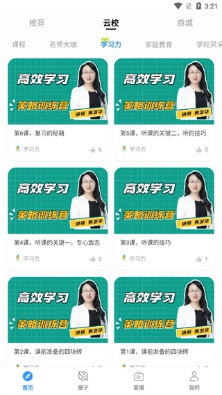 1、双击打开软件,用户需要点击软件上方的云校来寻找学习资料;