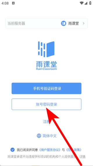在登录选项页面,点击“账号密码登录”选项,即可进入密码登录界面。