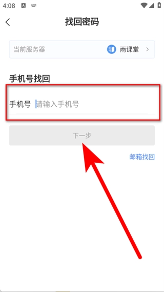 3、在找回密码页面,输入手机号,点击下一步。