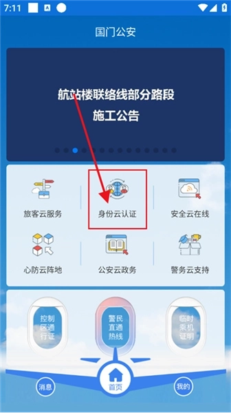 4、登录成功后,在首页找到并点击【身份云认证】选项,系统会自动带您进入身份认证页面。(如下图所示)