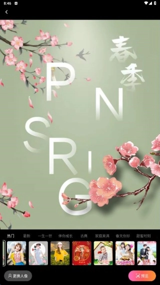 3、挑选合适的人像素材,导入模板来创作新内容,还能在线查看成品的预览效果;