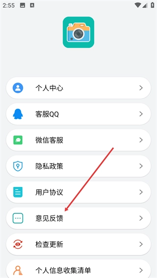 2、在功能菜单中选择“意见反馈”选项,即可进入建议反馈的编辑界面,准备提交问题或建议。