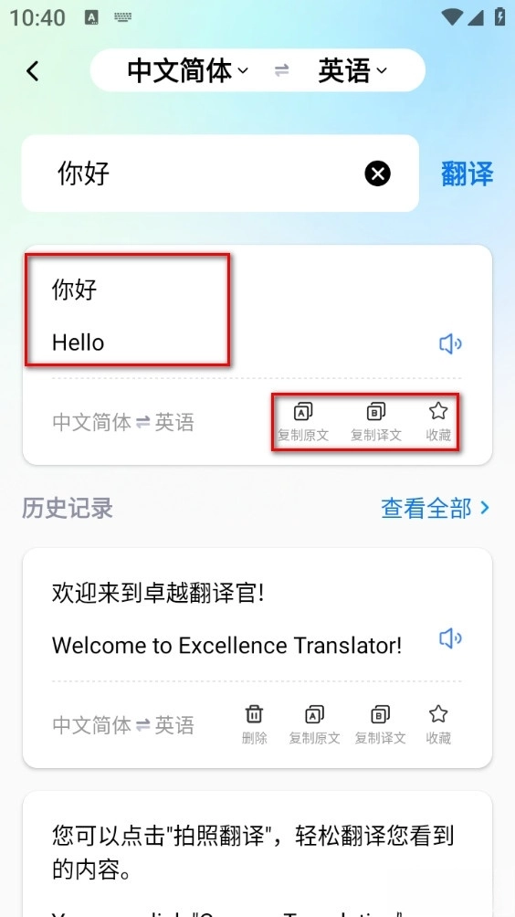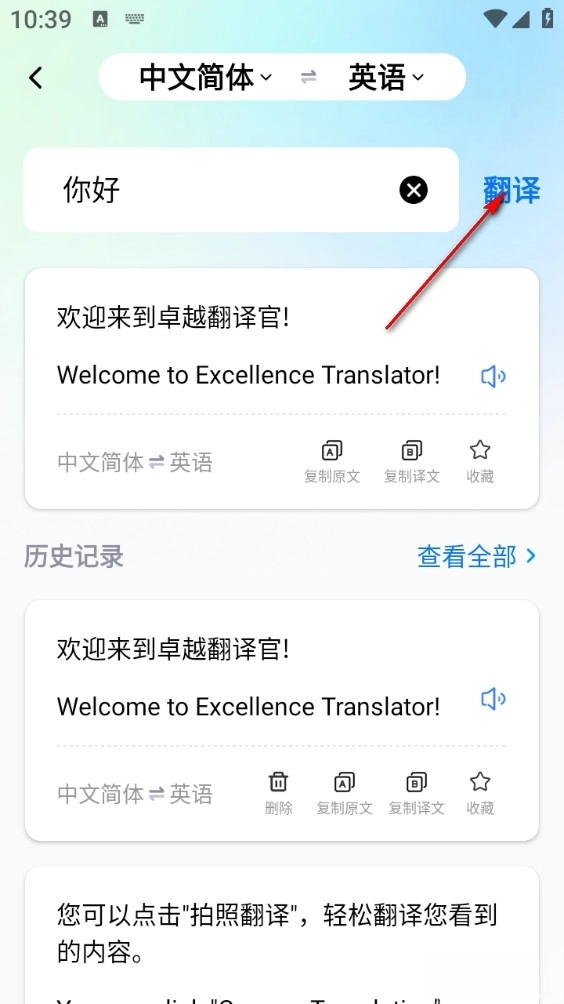 1、翻译完成后,用户可以一键复制译文,方便分享和记录;