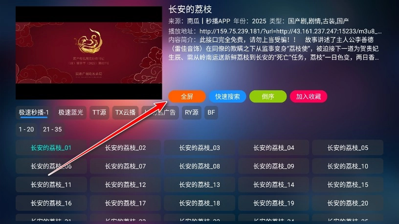 6、查看右侧的播放源列表,随机选择一个播放源点击