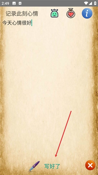 2、心情内容填写完成后,点击界面下方的“写好了”按钮,即可进入后续的发送设置环节。