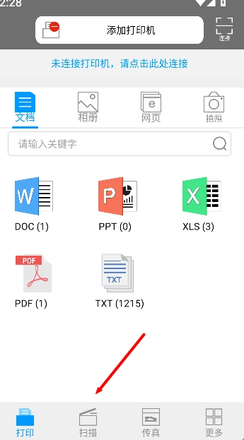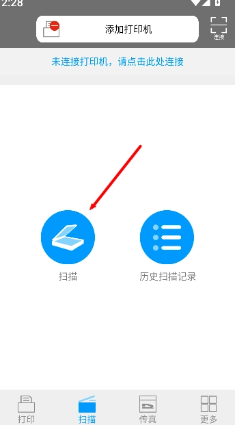 2、在扫描页面中,再次点击扫描,进入扫描设置与操作界面。