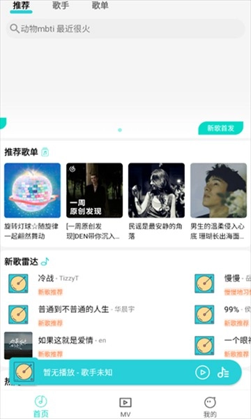 3、【极简设计】首页采用搜索、推荐、歌单三栏布局,3秒即可完成找歌到播放的流程。