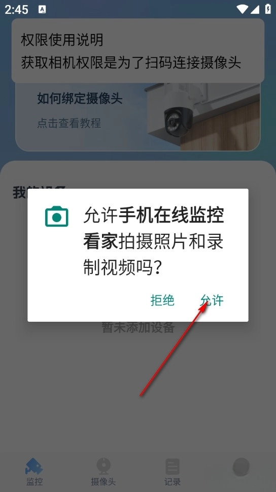 3、最后扫描监控设备上的二维码即可连接
