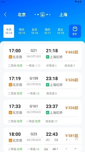 3、最后就可以选择你需要的车次进行购票了!