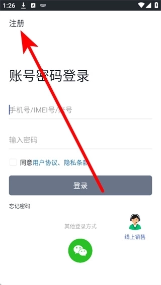 1、在万物在线的登录页面,点击左上角的注册按钮,即可进入新用户注册界面。