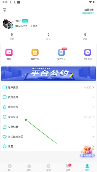 用户登录后,需进入应用的【我的】页面并点击【实名认证】选项,完成实名认证操作后,方可使用应用的全部功能。