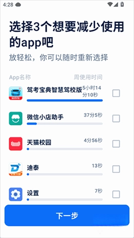 你可以自行设定每日默认限制时长为5分钟,也能够根据不同类别分别设置对应的限制时间。
