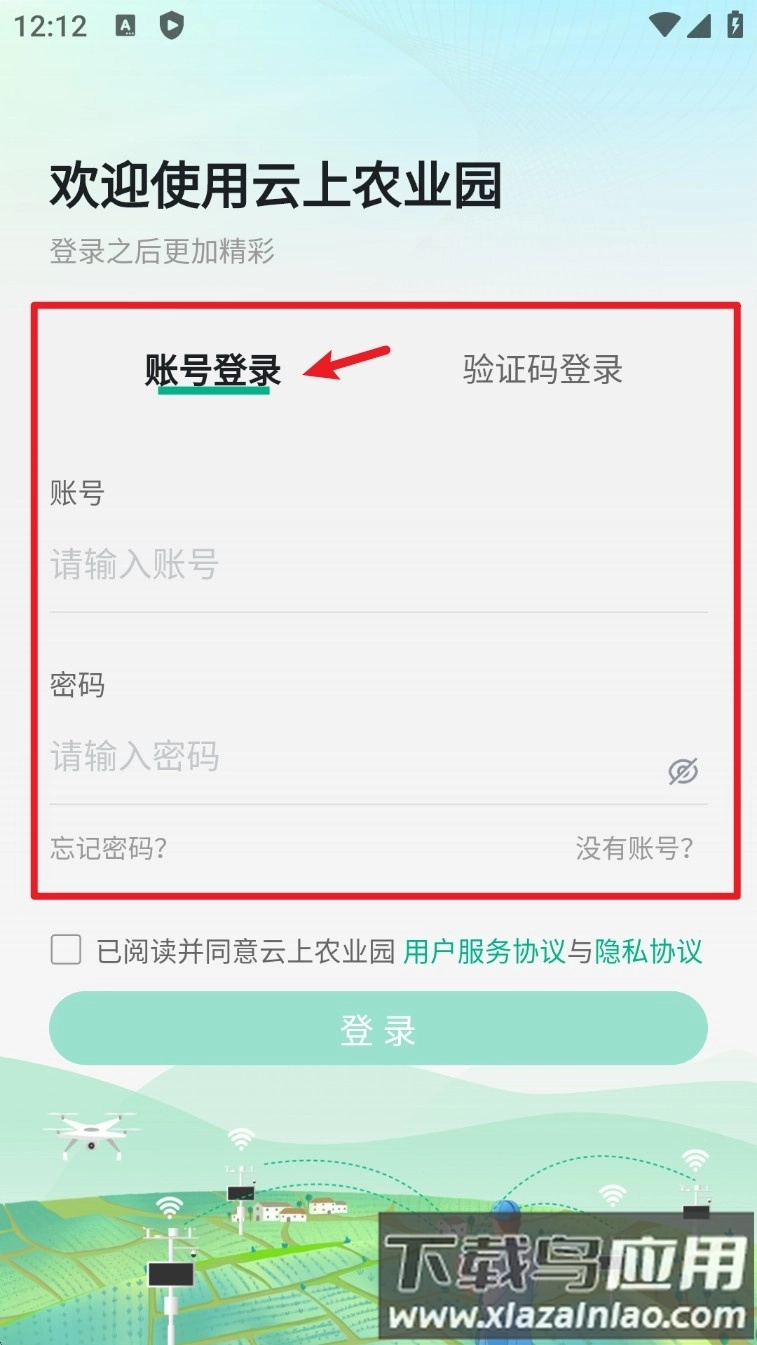 2. 返回登录界面输入账号密码进行登录,首次使用需先同意用户协议(新用户首次登录时需先同意用户协议);