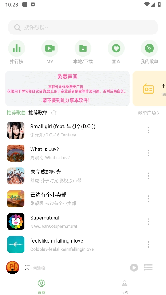 打开软件后,在首页选择歌曲或者是搜索歌曲。