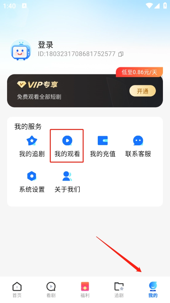 进入之后点击“我的”-“我的观看”。