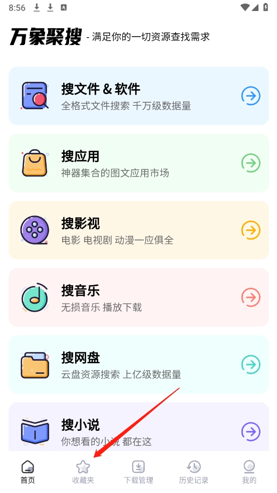 万象聚搜收藏的内容在哪里查看