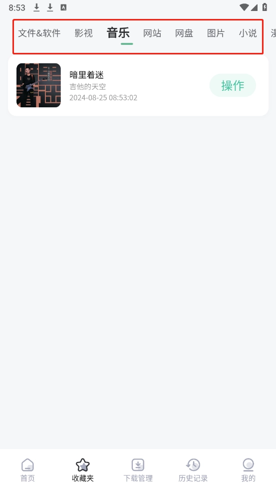 可以点击类别查看自己收藏的内容了。