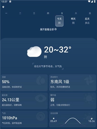 还有每日天气的详细情况,涵盖温度、湿度、紫外线、风力等信息