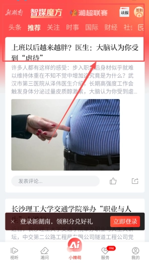 在首页,用户可便捷浏览各类新闻资讯,涵盖湖南本地新闻与国际重大事件,助力其在短时间内获取所需信息。