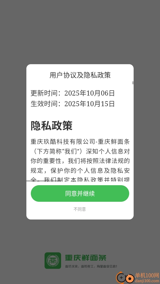 打开软件后阅读《用户协议及隐私政策》,点击“同意并继续”按钮即可进入。