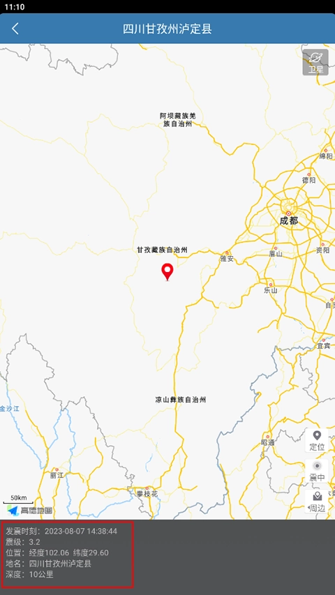 点击“卫星”选项,我们还能够实时观测与地震相关的情况。