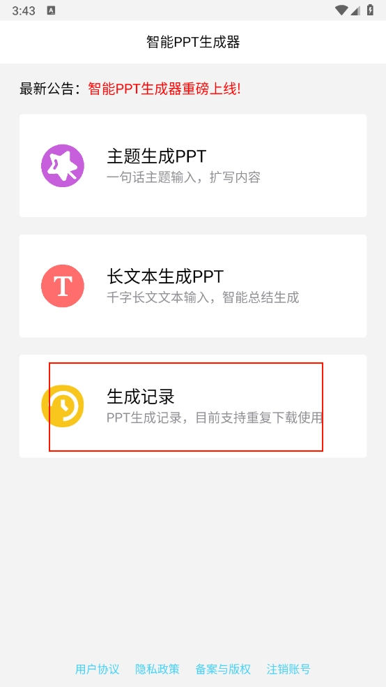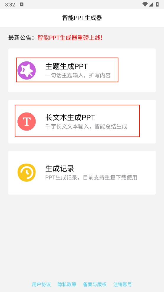在本站安装智能PPT生成器,仔细阅读并了解相关协议与隐私政策后,完成注册及登录操作。