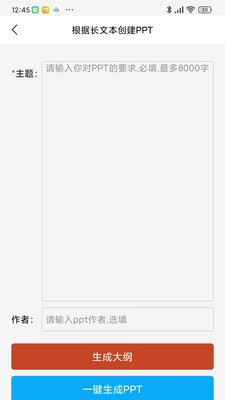 进入软件后,功能涵盖了通过主题生成PPT以及依据长文本生成PPT这两种方式。