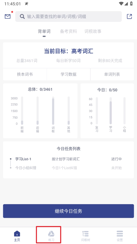 最后进入即可进行练习学习了。