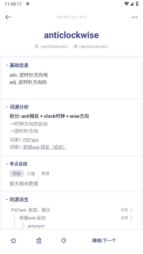 学员要是碰到不认识的词汇,点击“不认识”按钮,就能马上查看该词汇的详细信息。