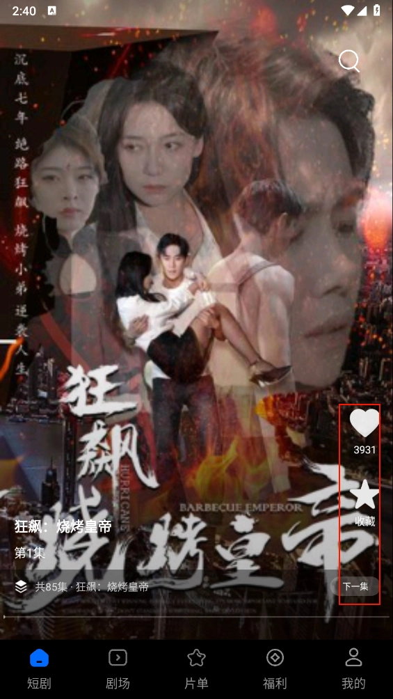 打开软件后,进入短剧专区,通过上下滑动就能切换不同的短剧资源,还可以随时点击收藏按钮保存喜欢的内容,也能自由切换剧集观看。