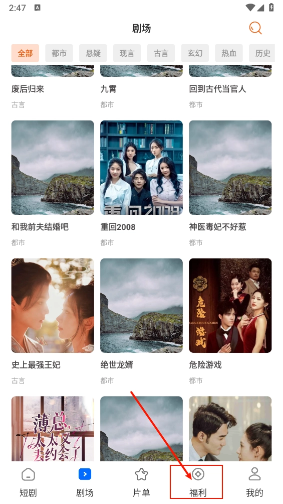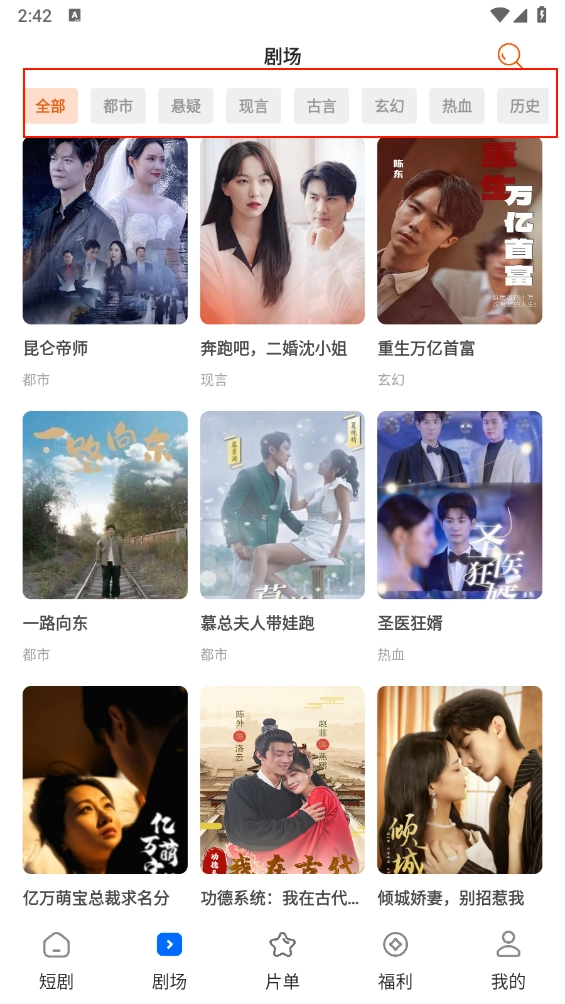 进入“剧场”板块,这里涵盖都市、现代、热血、历史等各类内容,大家可以根据个人喜好选择观看。