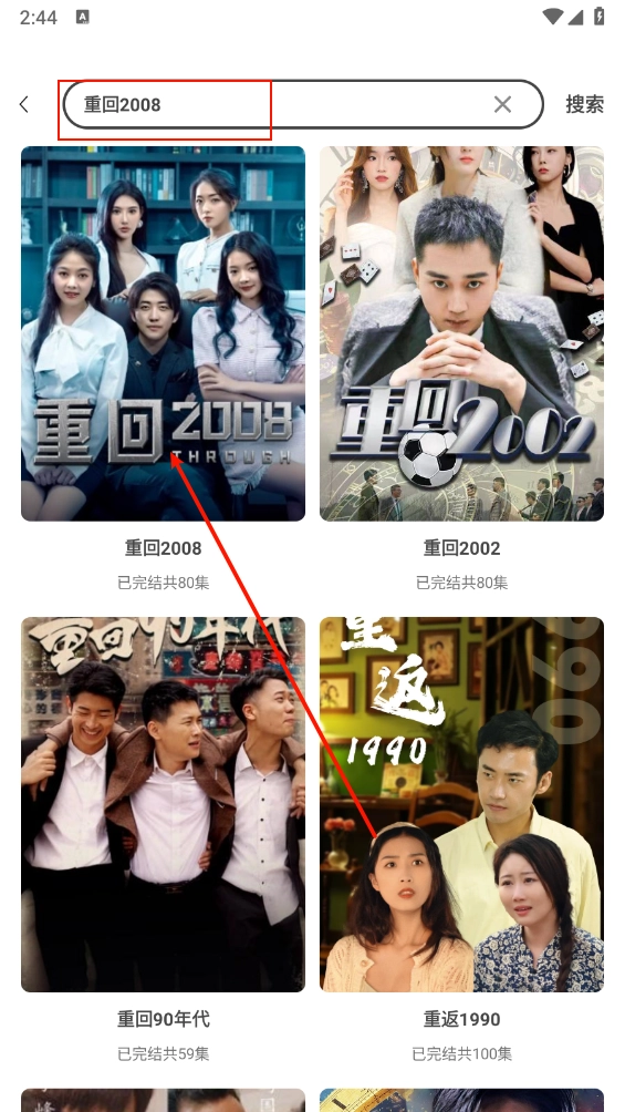 输入你喜欢的短剧资源名称,就能一键精准搜索,像“重回2008”这类,点击即可直接观看。