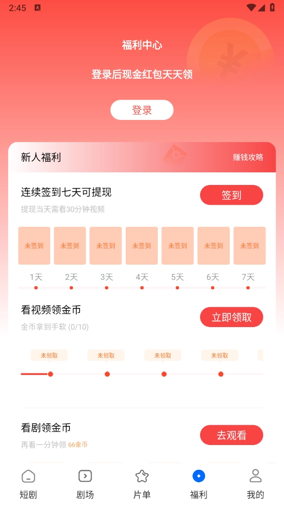 最后在“福利”板块,新人登录后还能每天领取超多的金币。