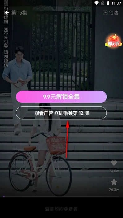 后续剧集需观看广告解锁,看完广告就能免费解锁该集内容。