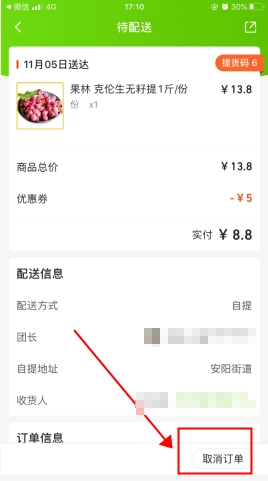 首先打开十荟团,进入个人中心页面,接着进入订单页面,找到需要取消的订单内容。