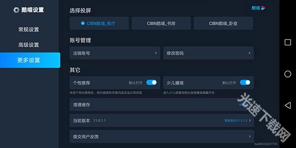 然后进入应用的设置页面(在首页点击“我的”,接着点击“设置”进入),在该页面中点击【更多设置】,选择对应的投屏设备,系统便会自动完成投屏操作。