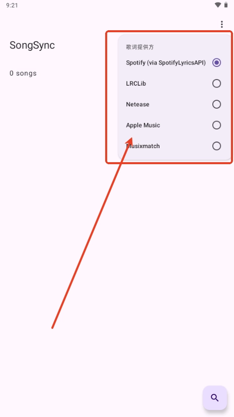 可选择声破天音乐、网易云音乐、苹果音乐LRCLib、Netease、Musixmatch等源。