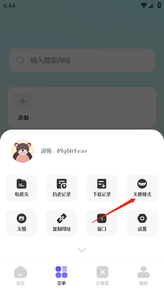 点击底部栏中的“菜单”,将“无痕模式”开启。