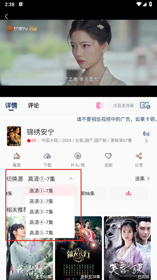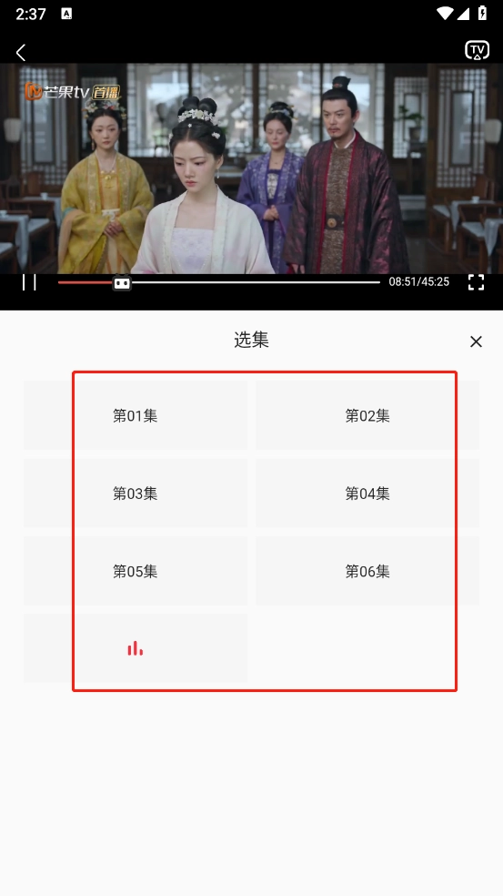 挑选好想看的剧集并打开,再选定想看的集数,就能进入正片播放了。