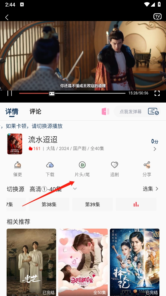 浏览或搜索到想看的影视剧集后打开即可,就像小编打开的是《流水迢迢》一样。