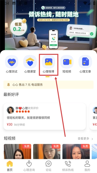 在首页点击【心理微博】选项,即可进入心理微博专区。
